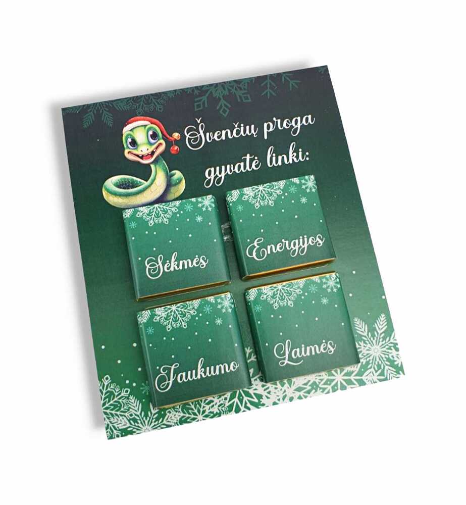 Greeting card with chocolate ,,Svenciu proga gybate linki…,,