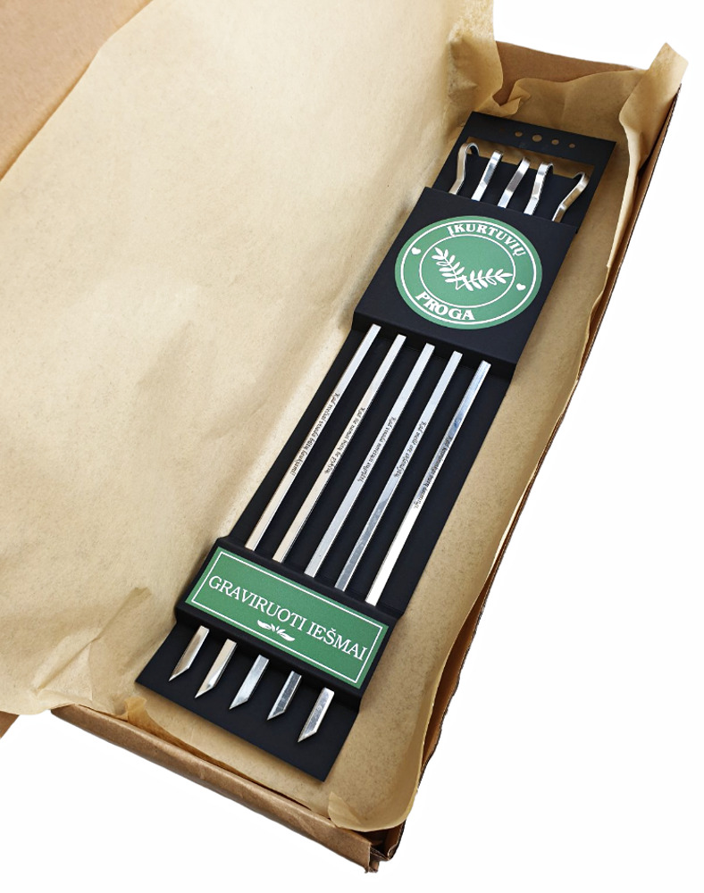 BBQ metal sticks set with carboard box ,,Ikurtuviu proga,,
