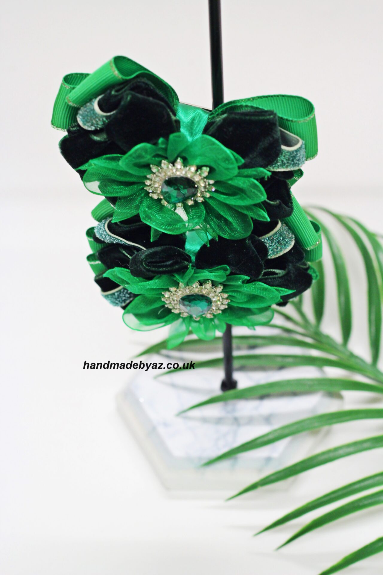 Pair Of Ribbon Hair Bows Clip ,,Green,,