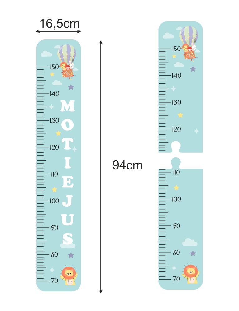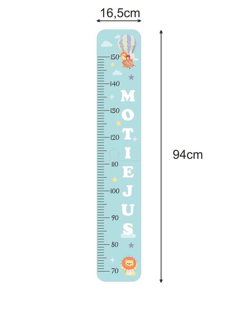 The measurement limits of the height ruler start from 70 cm. and ends at 150 cm, so children will definitely be able to enjoy their personalized height measuring tool for many years.