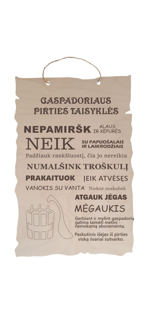 Hanging sign ,, Gaspadoriaus pirties taisykles,,