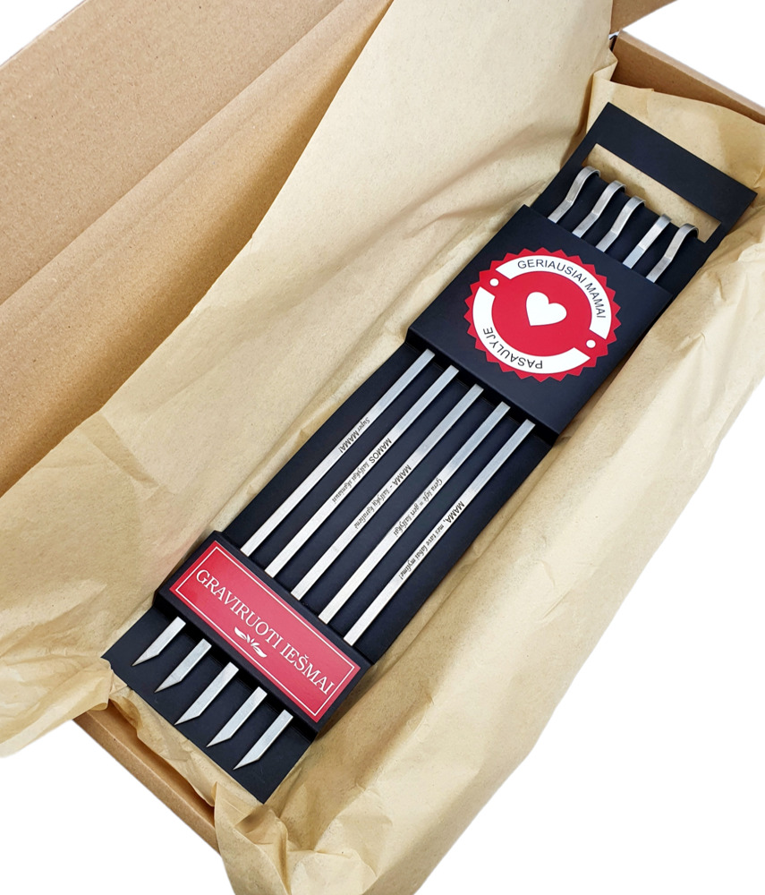 BBQ metal sticks set with carboard box ,,Geriausiai mamai,,