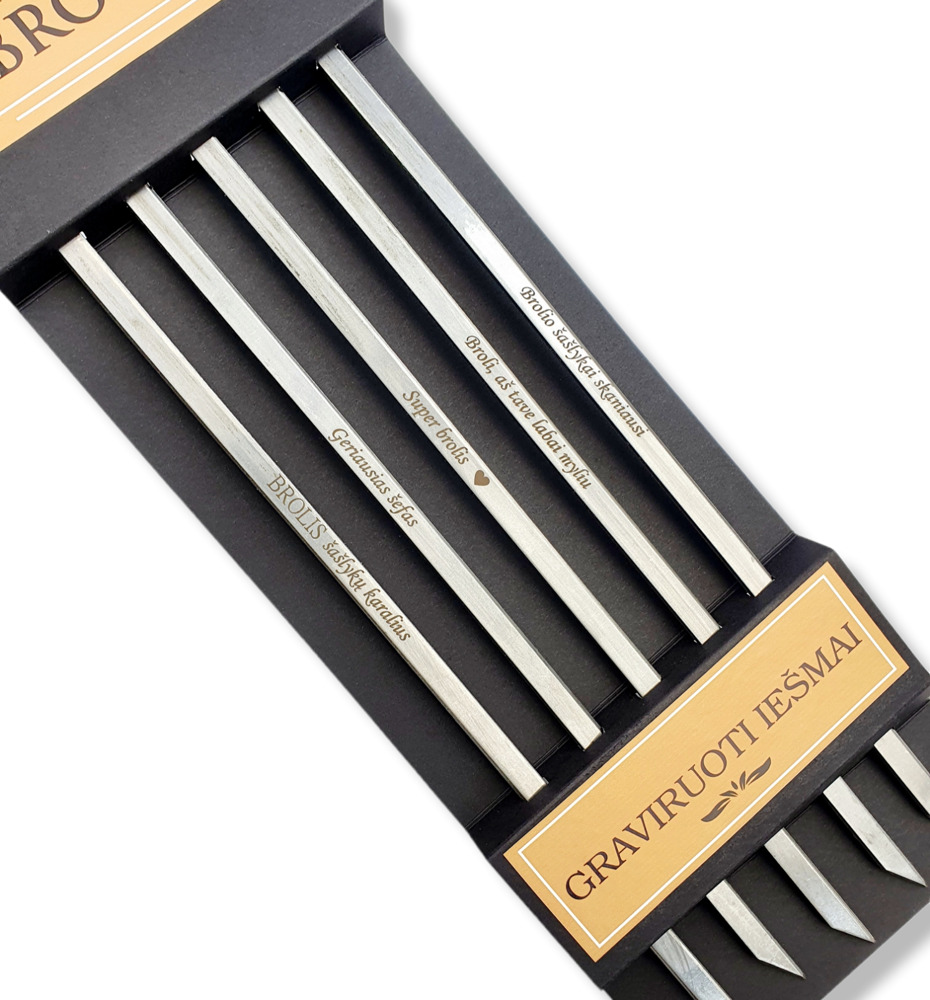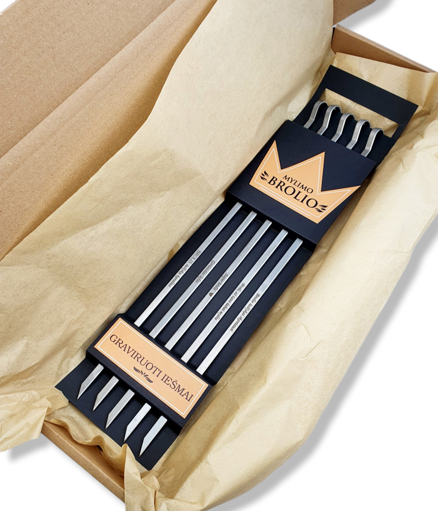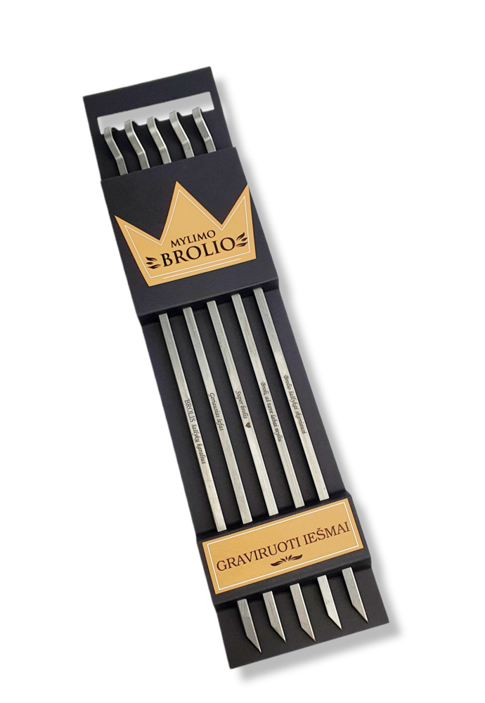 BBQ metal sticks set with carboard box ,,Mylimo brolio,,