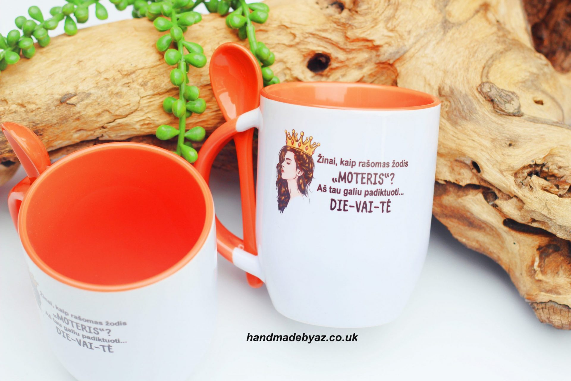 Ceramic mug and spoon.