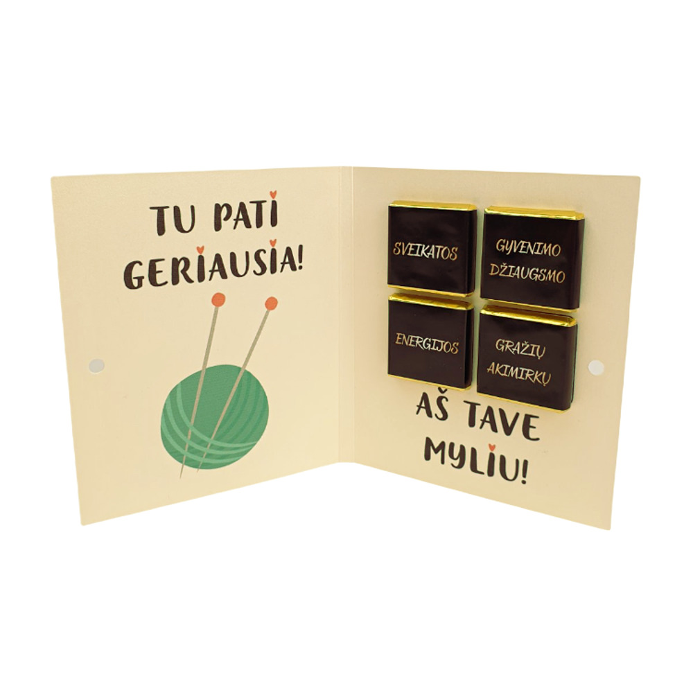 Greeting card with chocolate ,,Mylimai mociutei,,
