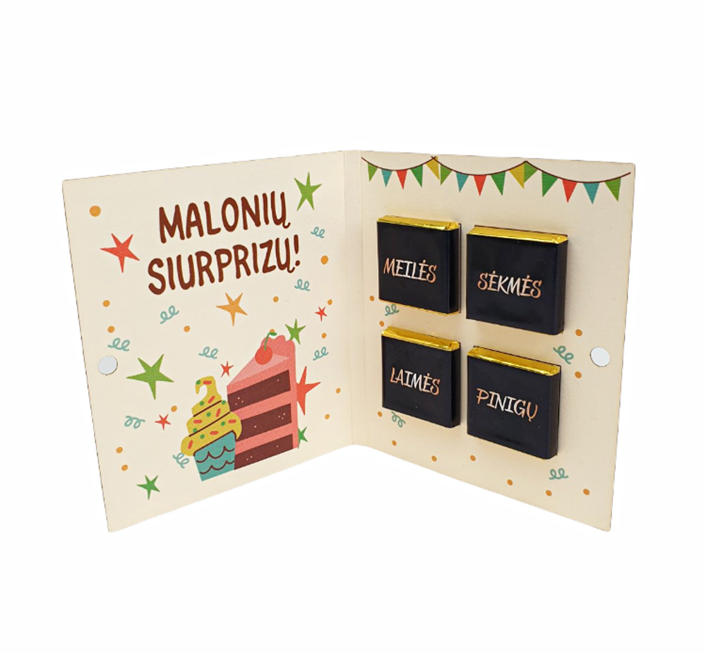 Greeting card with chocolate ,,Su gimtadieniu,,