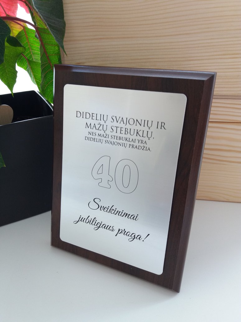 Greeting Plaque ,,40 Sveikinimai Jubiliejaus proga,,