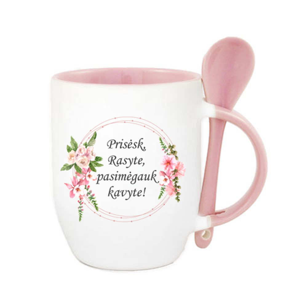 Personalised Cup with Spoon ,,Prisesk Rasyte.,,