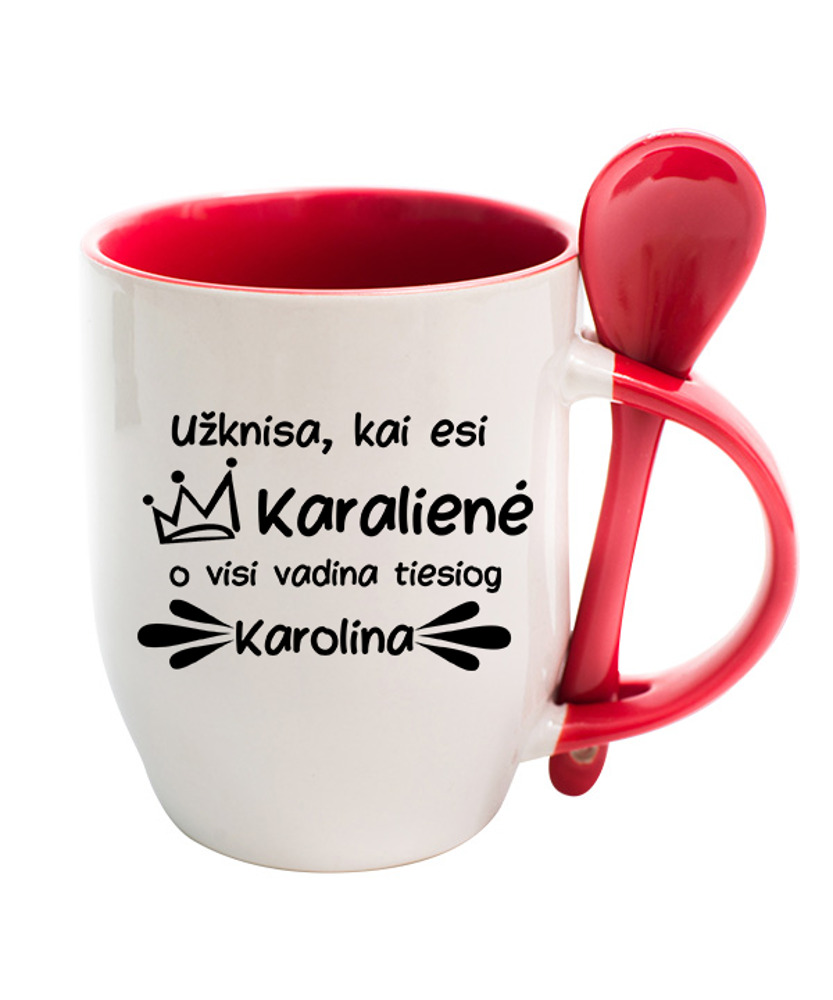 Personalised Cup with Spoon ,,Uzknisa,kai esi Karaliene,,