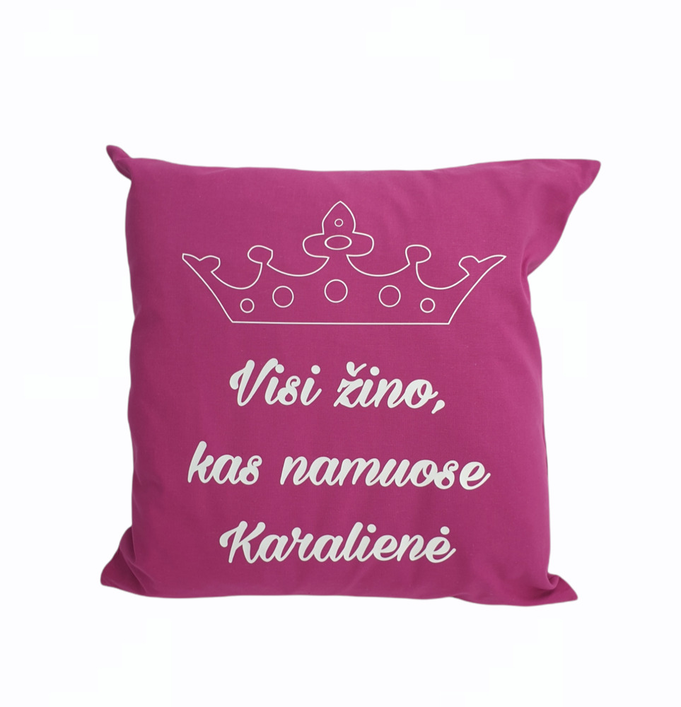 Pillow with print ,,Visi zino kas namuose Karaliene,,