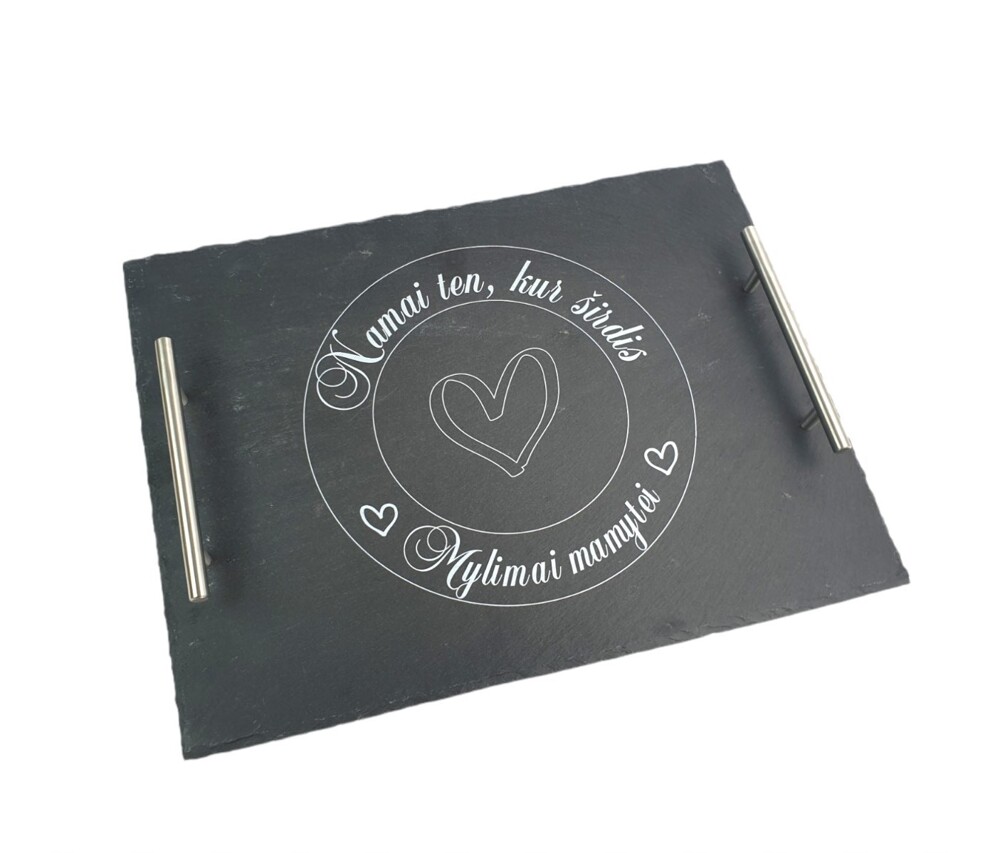 Stone tray with handle ,,Namai ten,kur sirdis...,, quantity