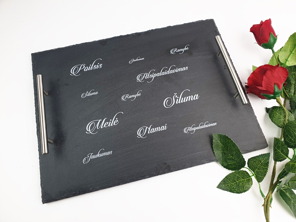 Stone tray with handle ,,Poilsis,Meile...,, quantity