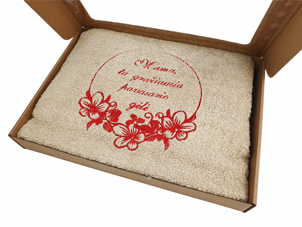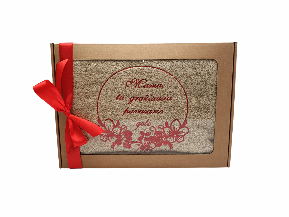 Towel with cardboard box ,,Mama,tu graziausia..,,