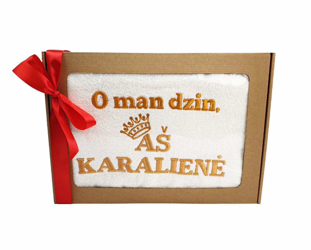 Towel with cardboard box ,,O man dzin,as karaliene,,