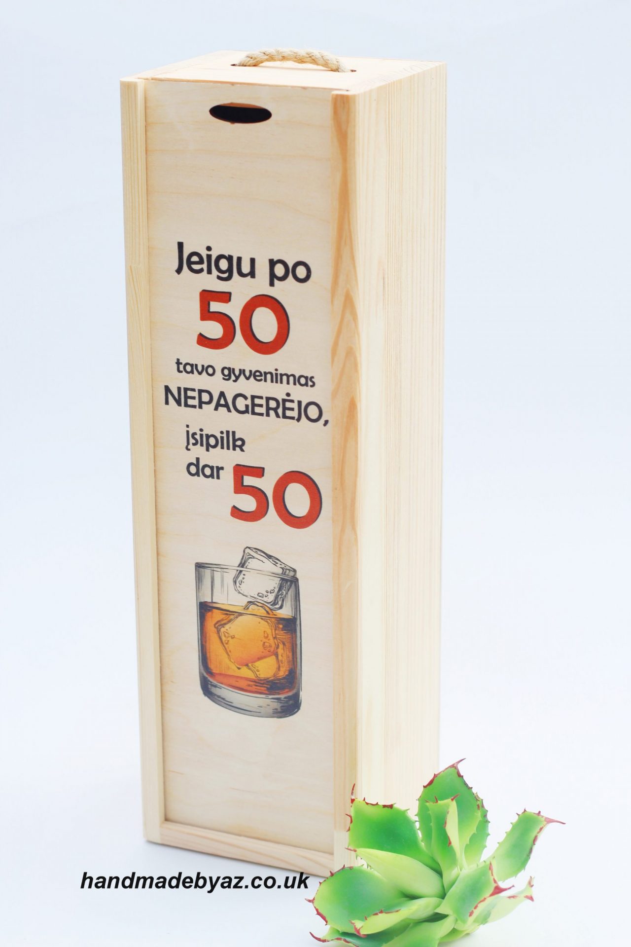 Wooden Wine Box ,, Jeigu po 50 Tavo gyvenimas nepagerejo…,,