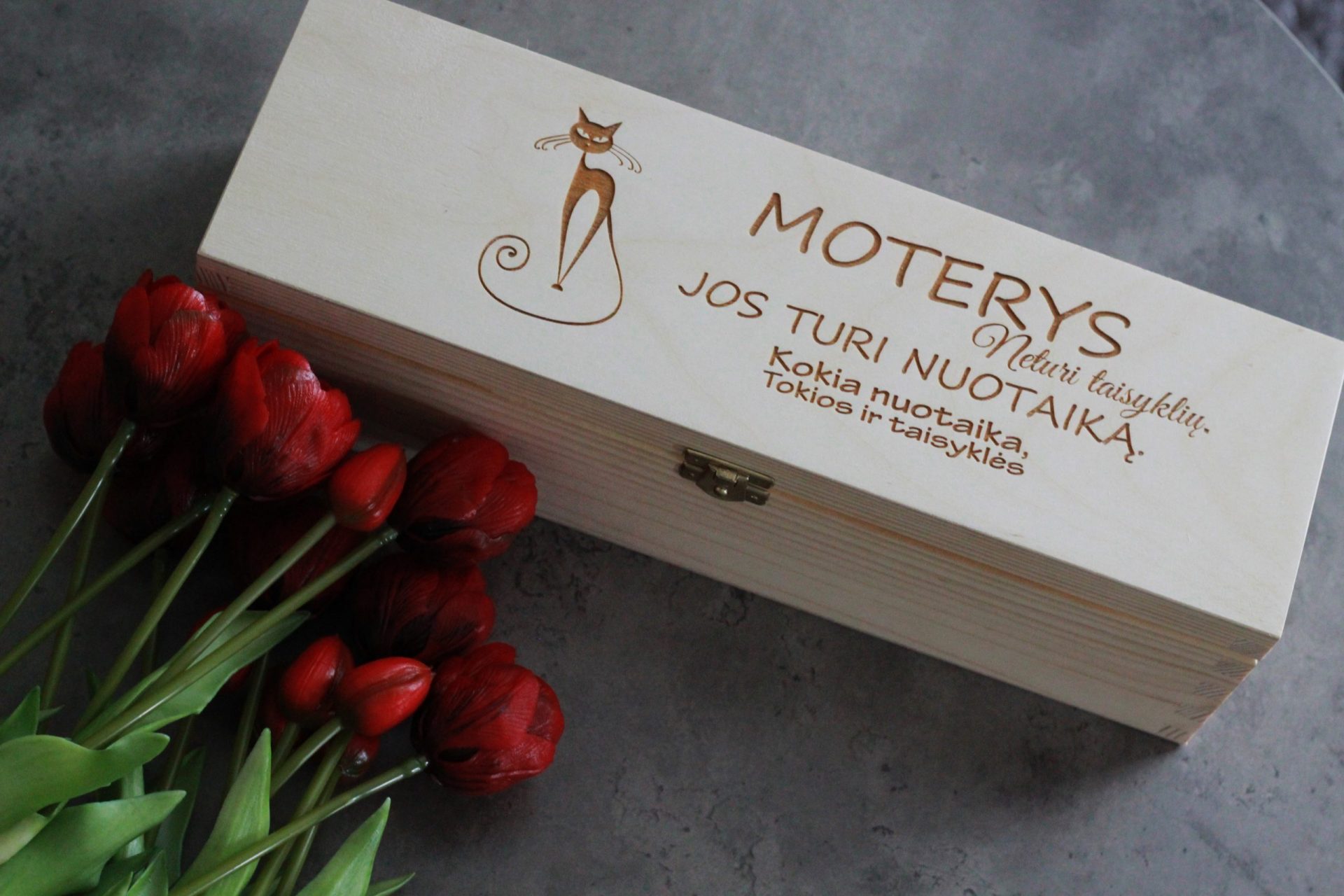 Wooden Wine Box ,,Moterys neturi taisykliu…,,