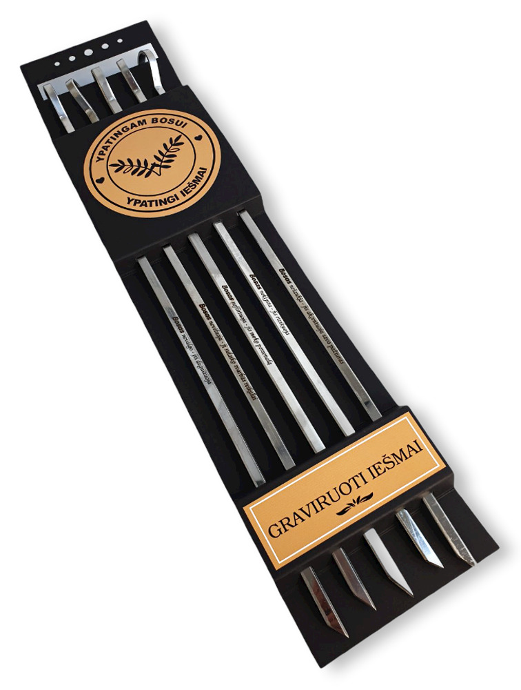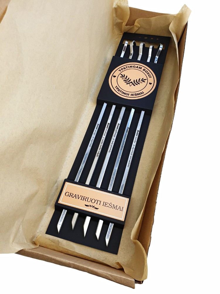 BBQ metal sticks set with carboard box ,,Ypatingam bosui,,