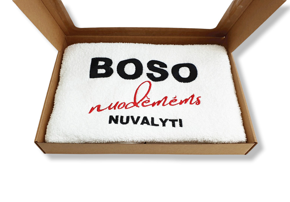 Towel with cardboard box ,,Boso nuodemems nuvalyti,,