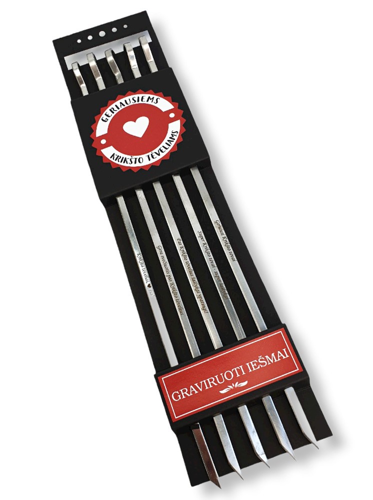 BBQ metal sticks set with carboard box ,,Geriausiems Kriksto Teveliams,,