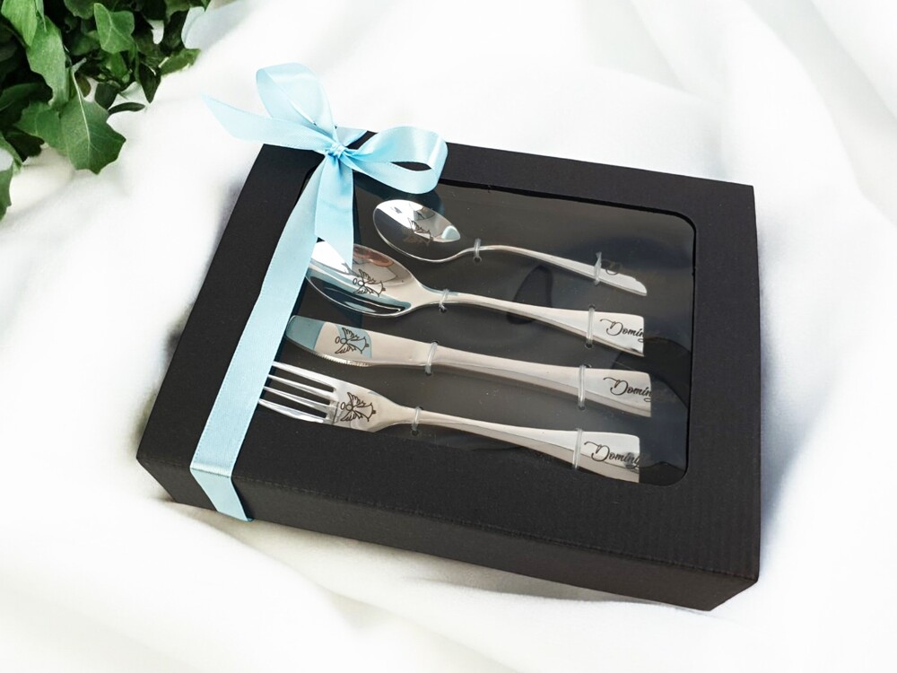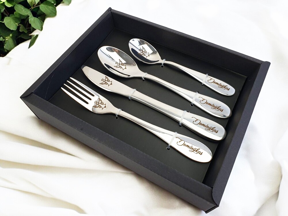 A set of high-quality children’s tableware with an engraved angel and a name of your choice. It is a practical gift that gives children the opportunity to make eating a more fun process and become more independent.
