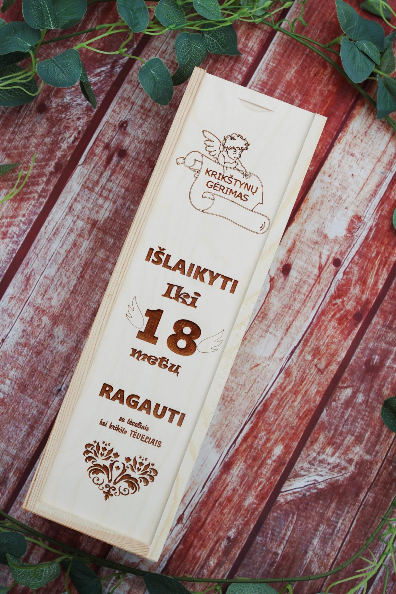 Wooden Wine Box ,,Islaikyti iki 18,,