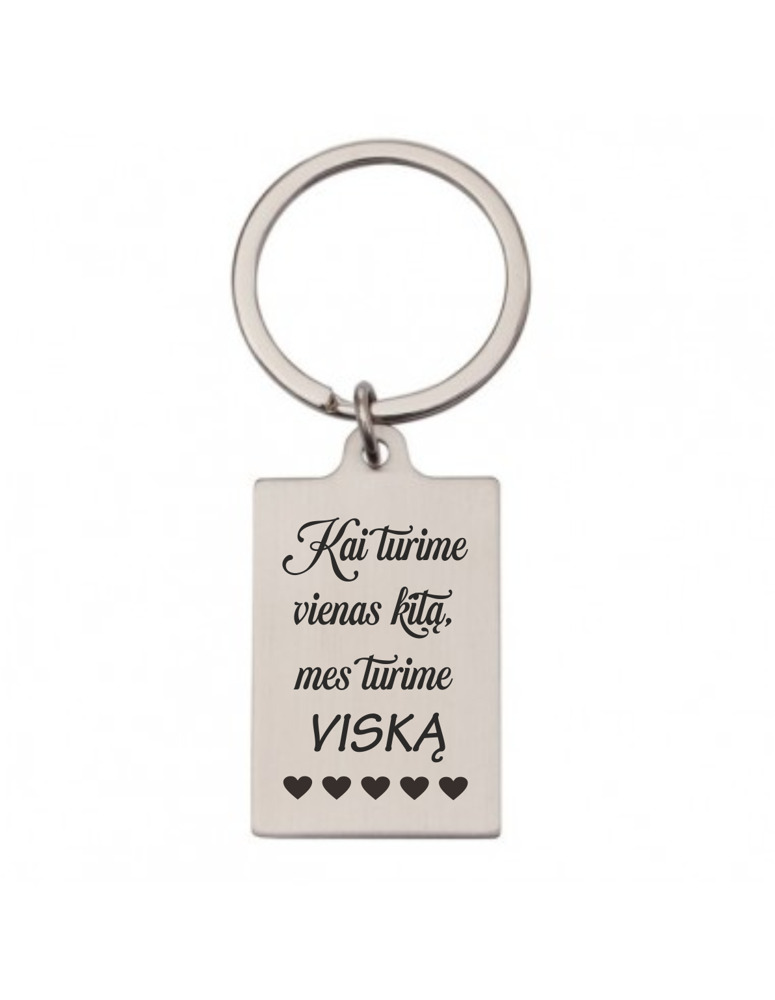 Metal keychain with secret message ,,Kai turime vienas kita..,,