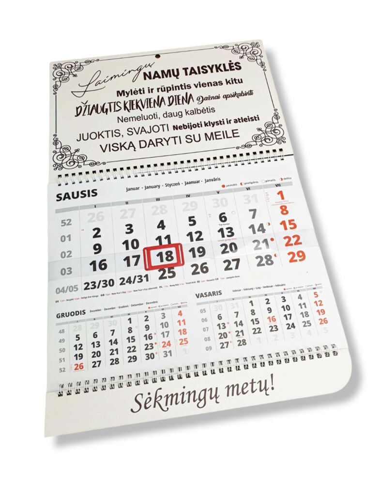 Wall calendar ,,Laimingu namu taisykles..,,