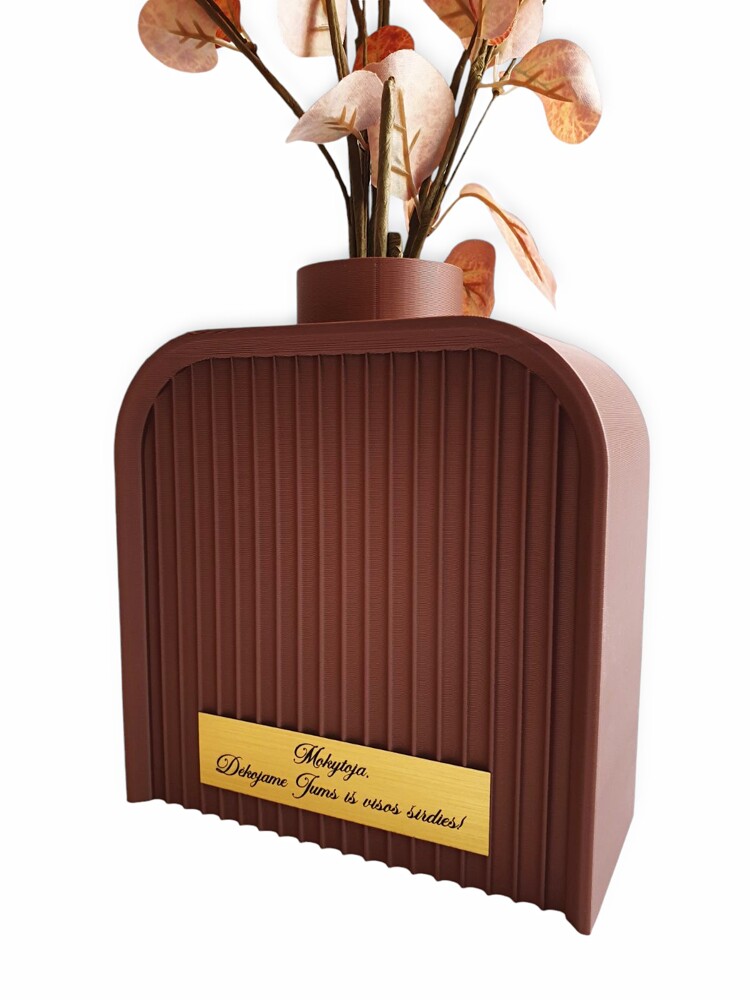 A 3D vase with a gold-colored plate is a stylish and unique gift. In this vase, the plants look stylish and enrich the interior of the house with a feeling of durability.