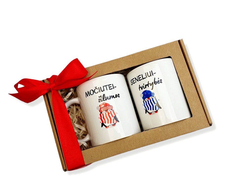 Cup set with carboard ,,Mociutei-silumos,Seneliui-tvirtybes,,