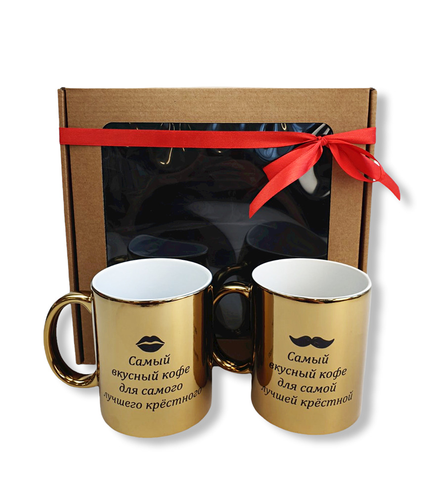 Gift set,,„САМЫЙ ВКУСНЫЙ КОФЕ ДЛЯ САМОГО ЛУЧШЕГО КРЁСТНОГО“ and „САМЫЙ ВКУСНЫЙ КОФЕ ДЛЯ САМОЙ ЛУЧШЕЙ КРЁСТНОЙ“