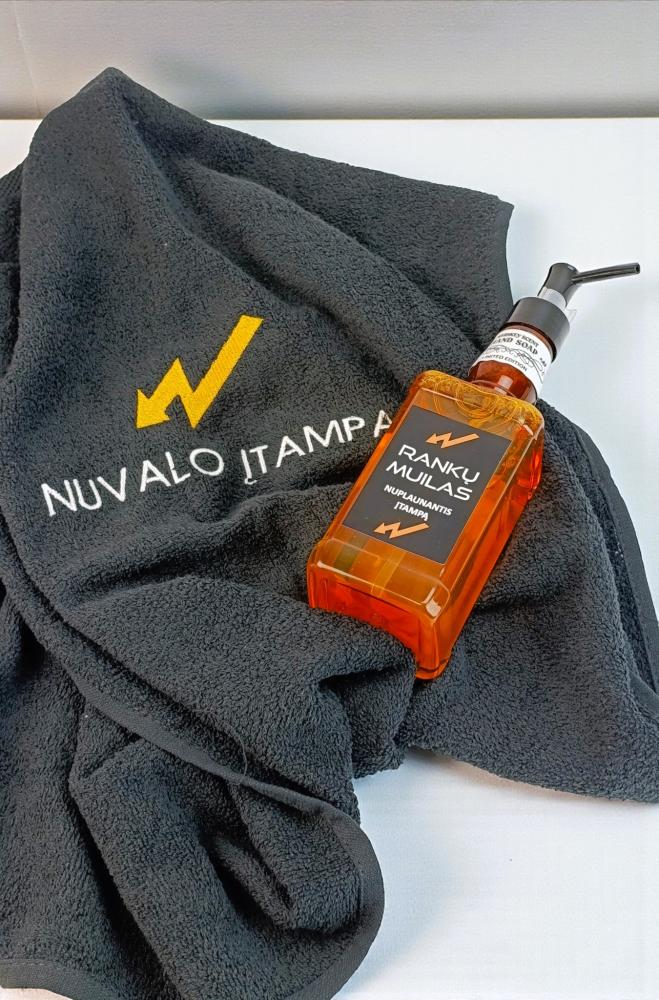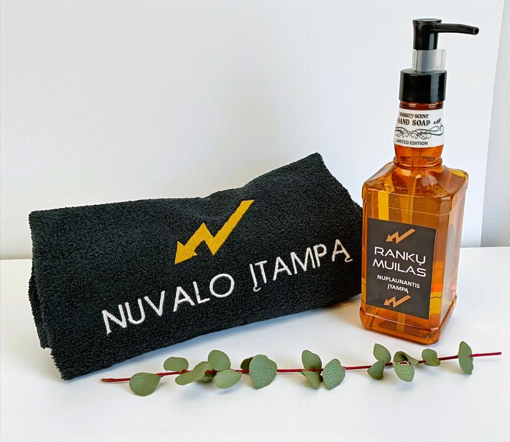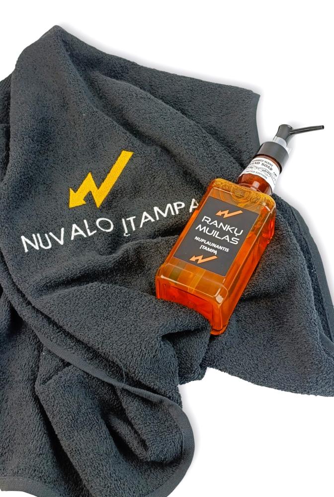 Cotton towel with embroidered inscription “Wipes away tension”