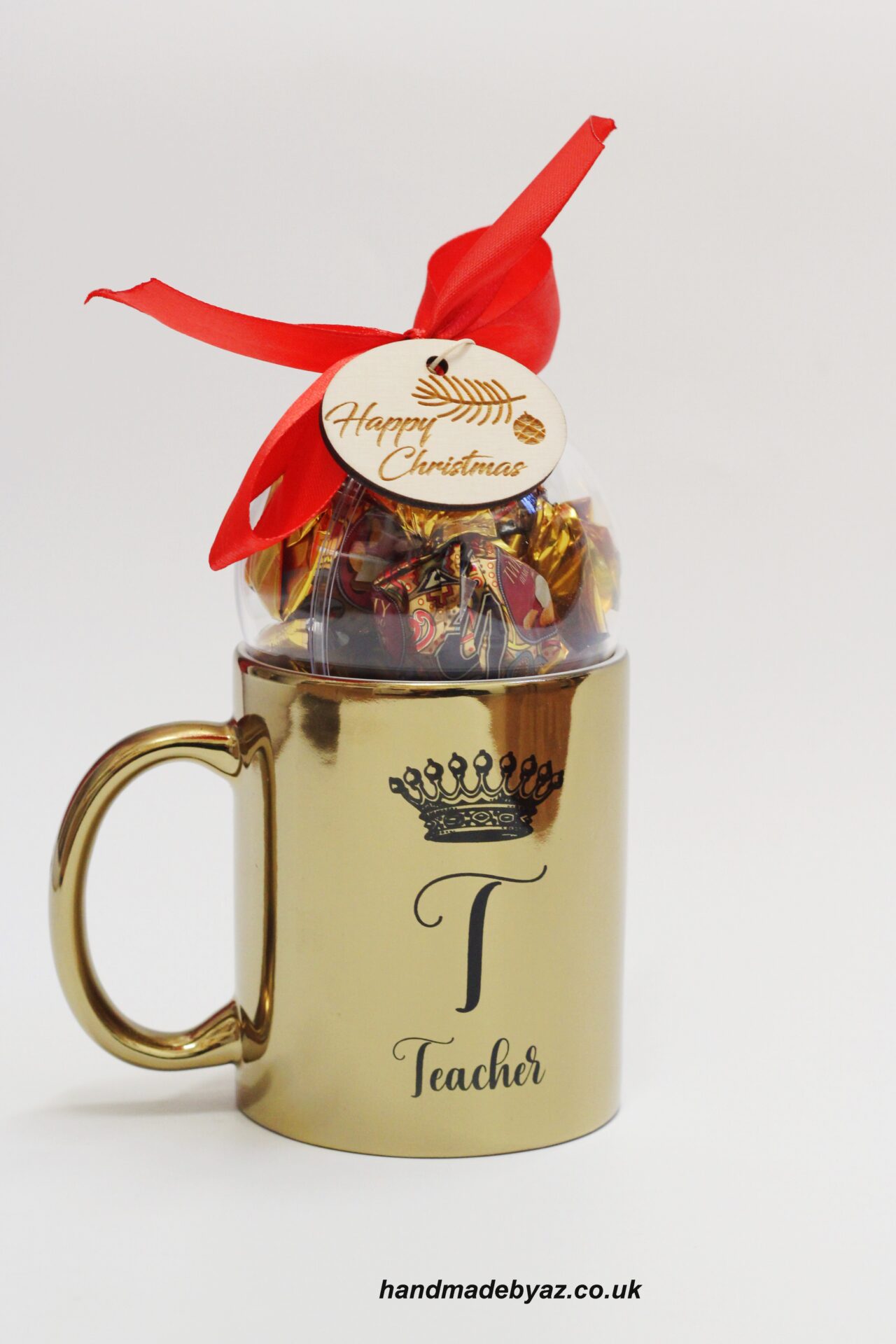 Christmas tree bauble (inside chocolate candy) with tag ,,Happy Christmas,,