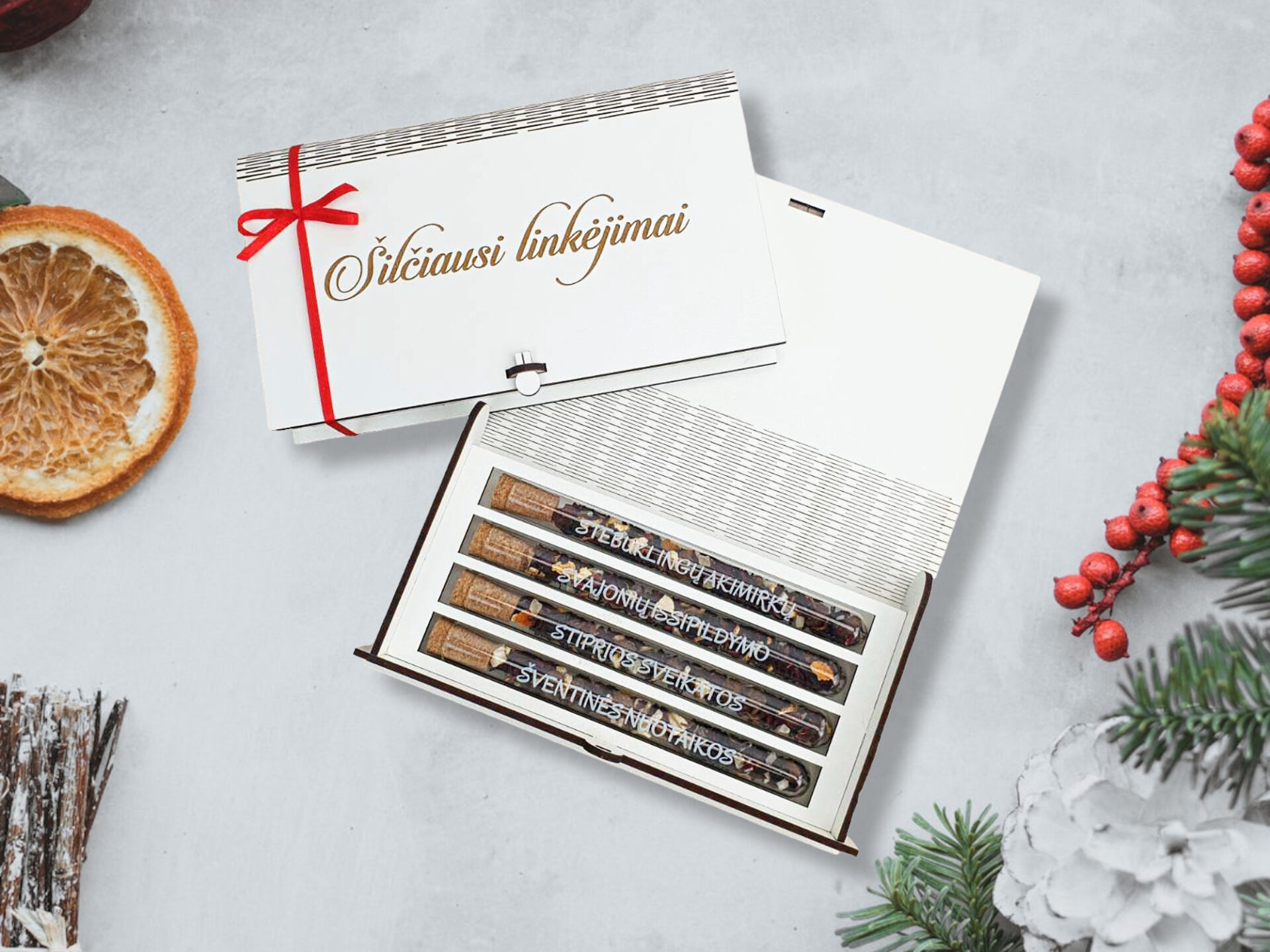 Tea set with box ,,Šilčiausi linkėjimai,,