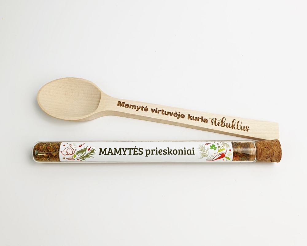 Wooden spoon with spice tube ,,Mamytes prieskoniai,,