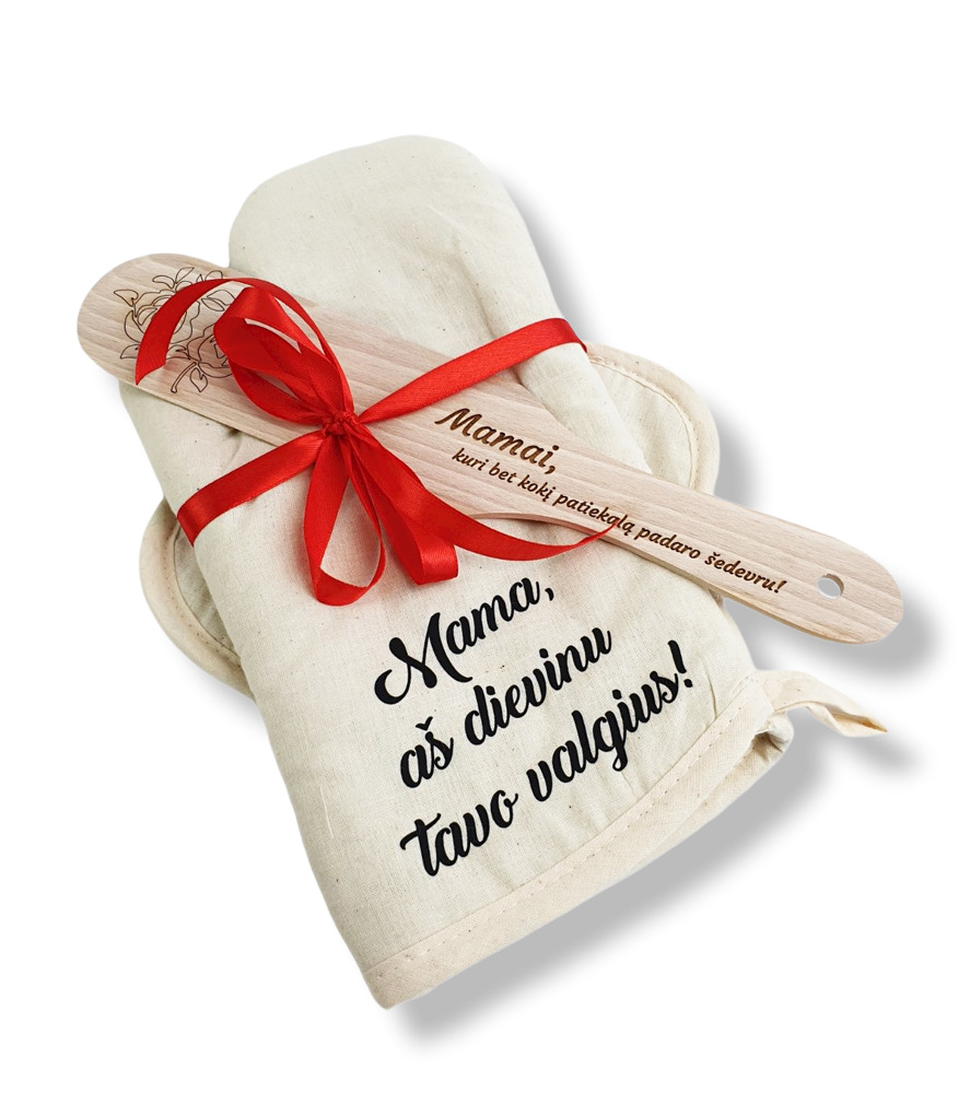 Oven Glove with spatula ,,Mama,as dievinu tavo valgius,,