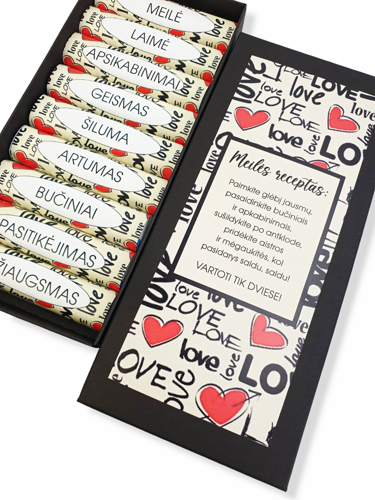 Ingredients: sugar, cocoa mass, vegetable fat (palm, shea) in various proportions, reduced-fat milk powder, whole milk powder, hazelnuts 4%, reduced-fat cocoa powder, cocoa butter, milk fat, emulsifiers (lecithins (soy) , polyglycerol polyricinoleate), vanilla extract, natural hazelnut flavor (contains hazelnuts), peanut paste. Chocolate: minimum 50% cocoa solids. May contain other nuts, eggs and grains that contain gluten.
