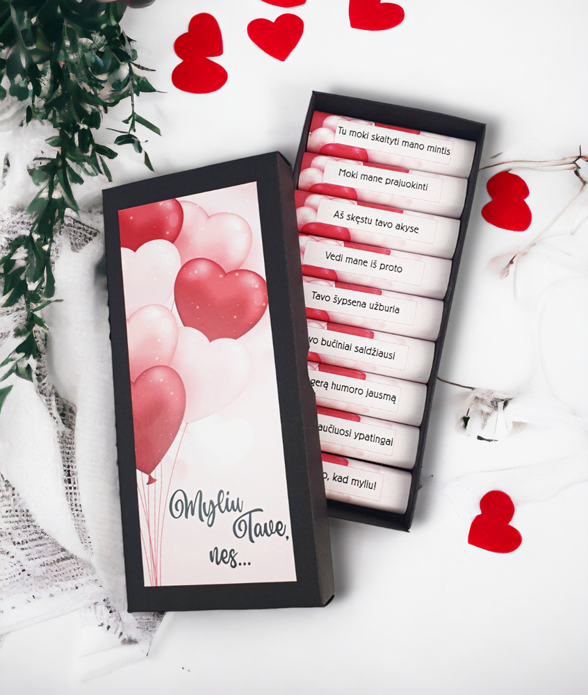 Ingredients: sugar, cocoa mass, vegetable fat (palm, shea) in various proportions, reduced-fat milk powder, whole milk powder, hazelnuts 4%, reduced-fat cocoa powder, cocoa butter, milk fat, emulsifiers (lecithins (soy) , polyglycerol polyricinoleate), vanilla extract, natural hazelnut flavor (contains hazelnuts), peanut paste. Chocolate: minimum 50% cocoa solids. May contain other nuts, eggs and grains that contain gluten.