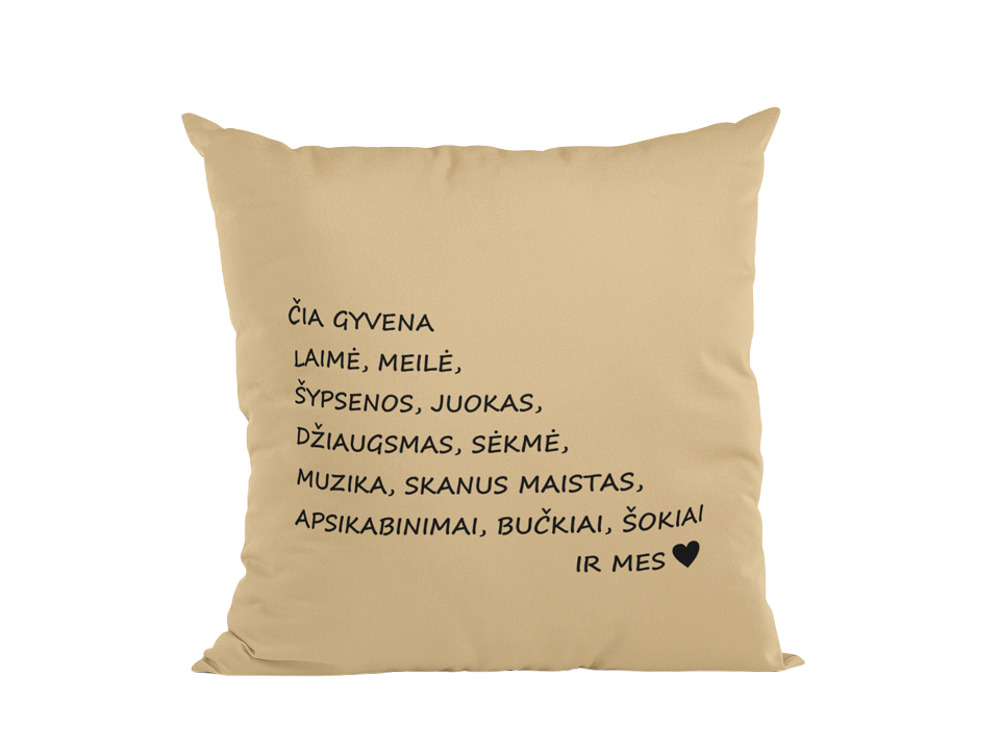 Pillow with print ,,Cia gyvena laime..,,