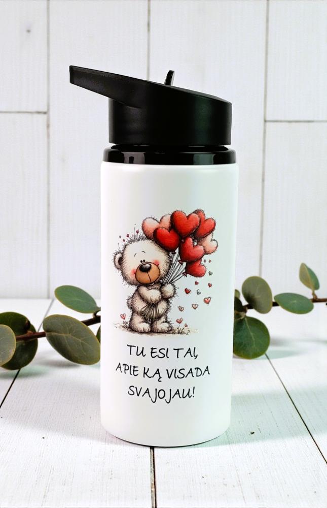 Recycled stainless steel single-walled drinking bottle with straw;