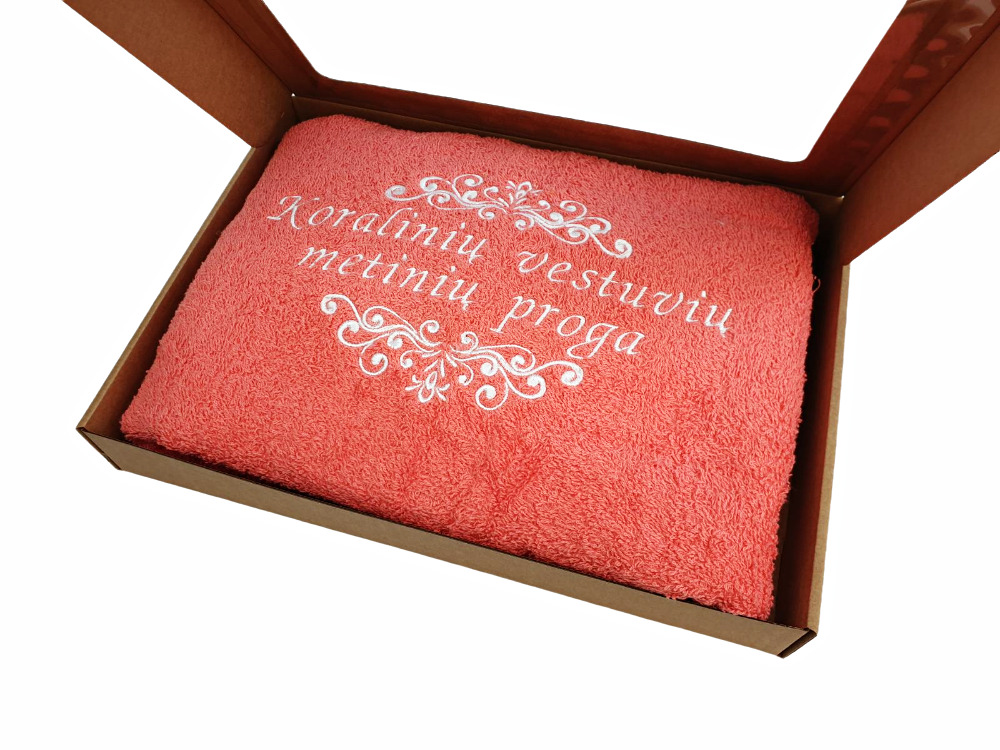 Towel with cardboard box ,,Koraliniu vestuviu..,,