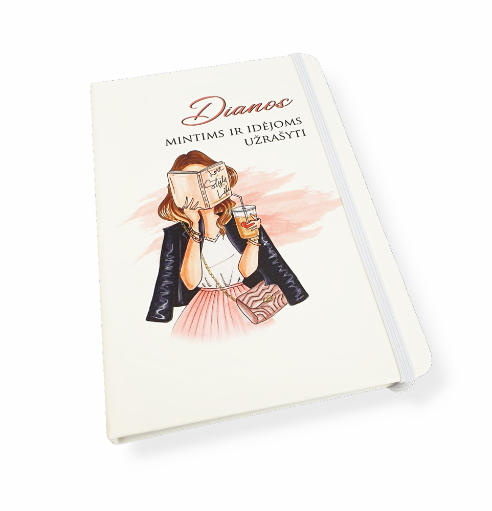 Personalised White Notebook ,,Dianos mintims ir idejoms uzrasyti,, (ANY NAME)