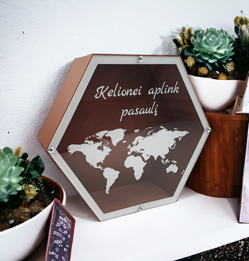 3D Piggy bank with map ,,Kelionei aplink pasauli,,