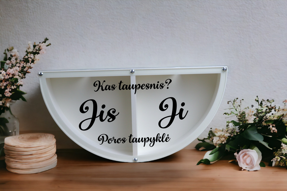 At the top of the piggy bank, coins are thrown through the dedicated cavity, and the transparent organic glass will allow you to see how many coins you have saved. The organic glass is fixed with metal screws, so in order to remove the coins, it will be possible to do this by unscrewing the screws of the piggy bank;