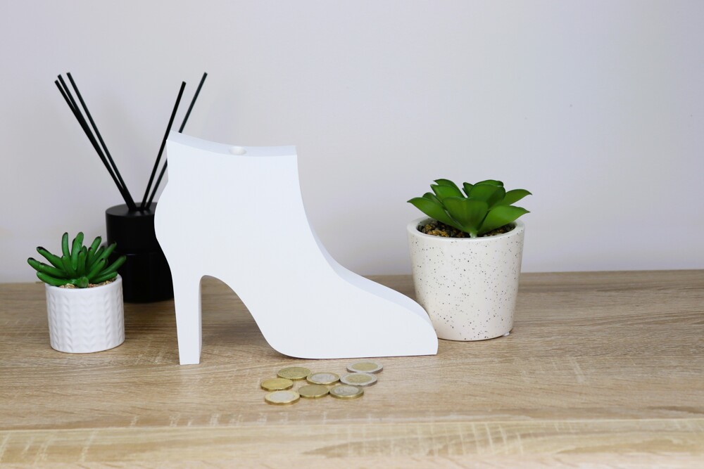 At the top of the piggy bank, coins are thrown through the dedicated cavity, and the transparent organic glass will allow you to see how many coins you have saved. The organic glass is fixed with metal screws, so in order to remove the coins, it will be possible to do this by unscrewing the screws of the piggy bank;