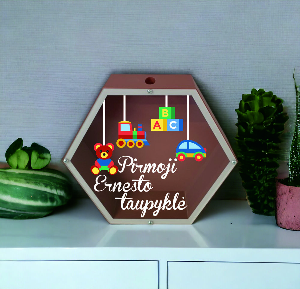 Piggy bank dimensions: 17x20x6cm.